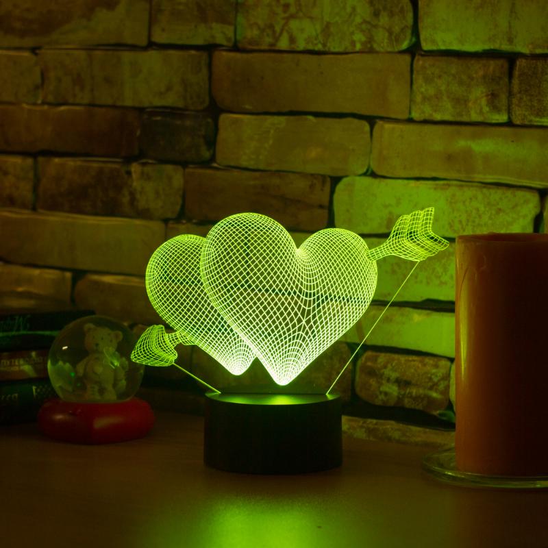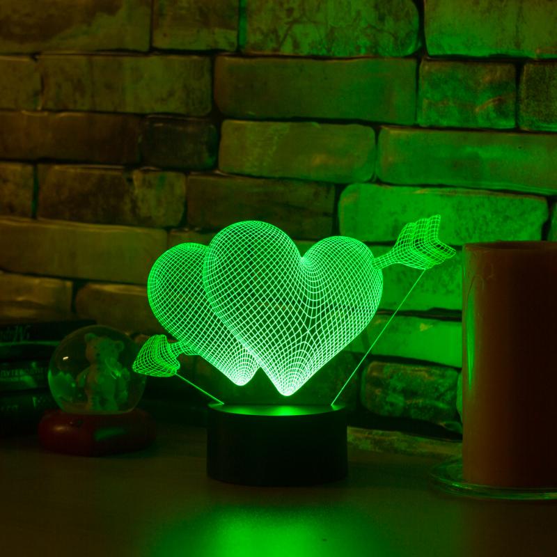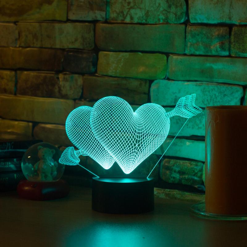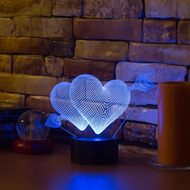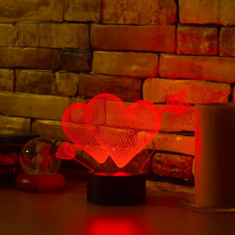 • 3D светильник Два сердца имеет превосходный вид в темноте
