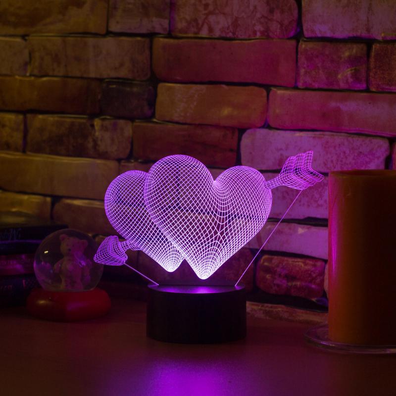 Купить 3D светильник Два сердца в интернет-магазине в Самаре