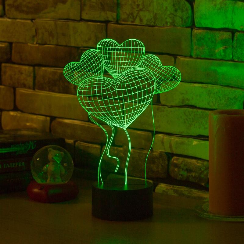 • 3D светильник Шары Сердца имеет превосходный вид в темноте