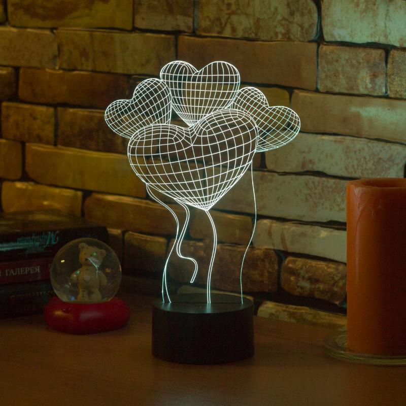 Купить 3D светильник Шары Сердца в интернет-магазине в Самаре