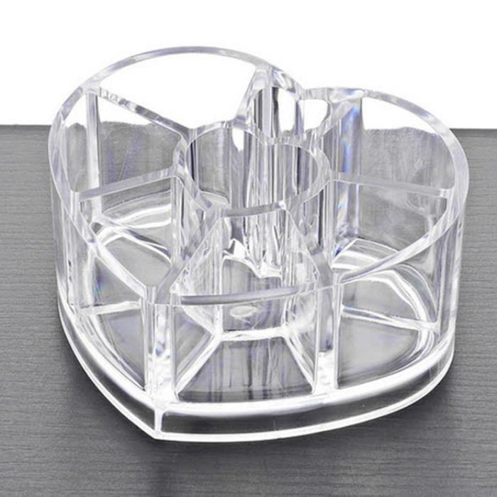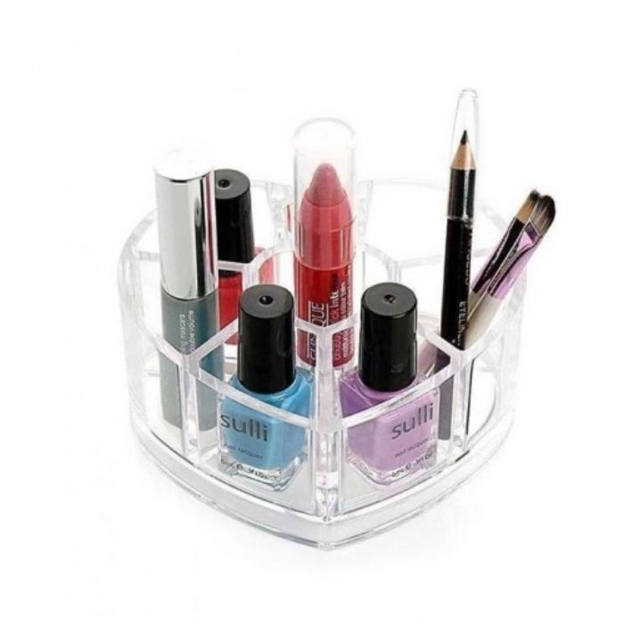 Расположить и держать в порядке на полке сотню средств по уходу за собой поможет акриловый органайзер Сердце. Здесь вы найдете множество отделений, в которые поместится многое. Необычная форма порадует каждую девушку, а прозрачный акрил позволяет легко разглядеть то, что находится внутри этого органайзера.
