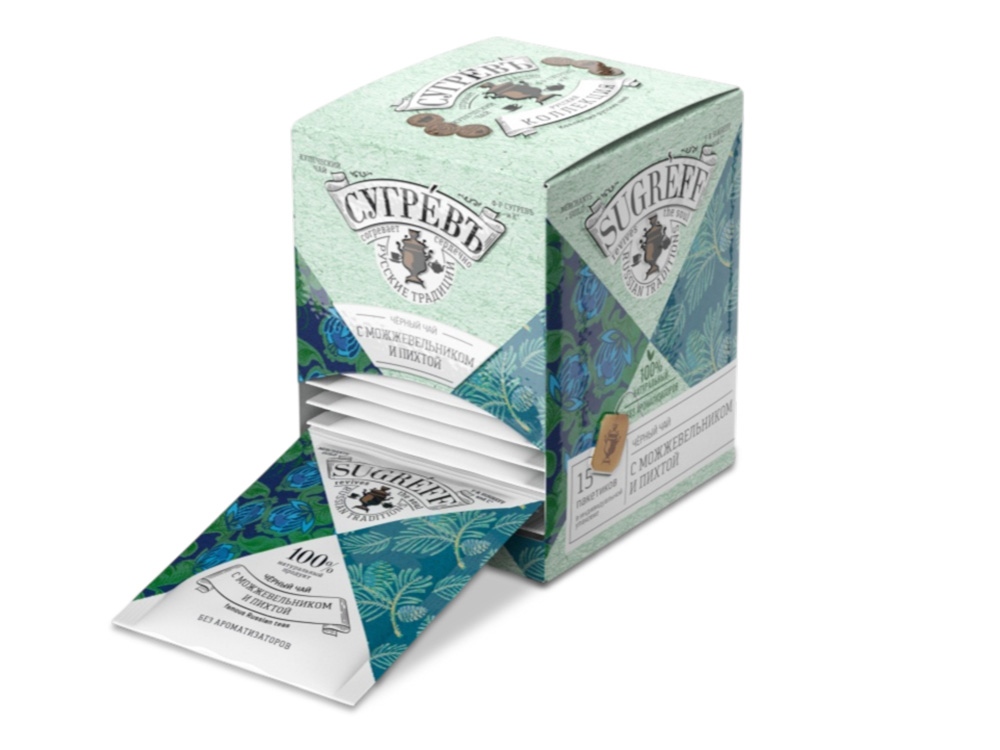 Чай черный с можжевельником и пихтой в индивидуальном саше конверте 15 пакетиков купить оптом и в розницу с нанесением логотипа в Самаре
