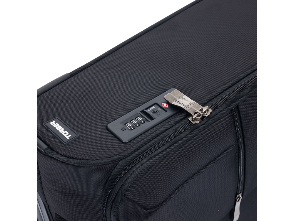 Чемодан TORBER СЕЙД, чёрный, нейлон 600D, 36,5 х 19 х 54 см, 32 л