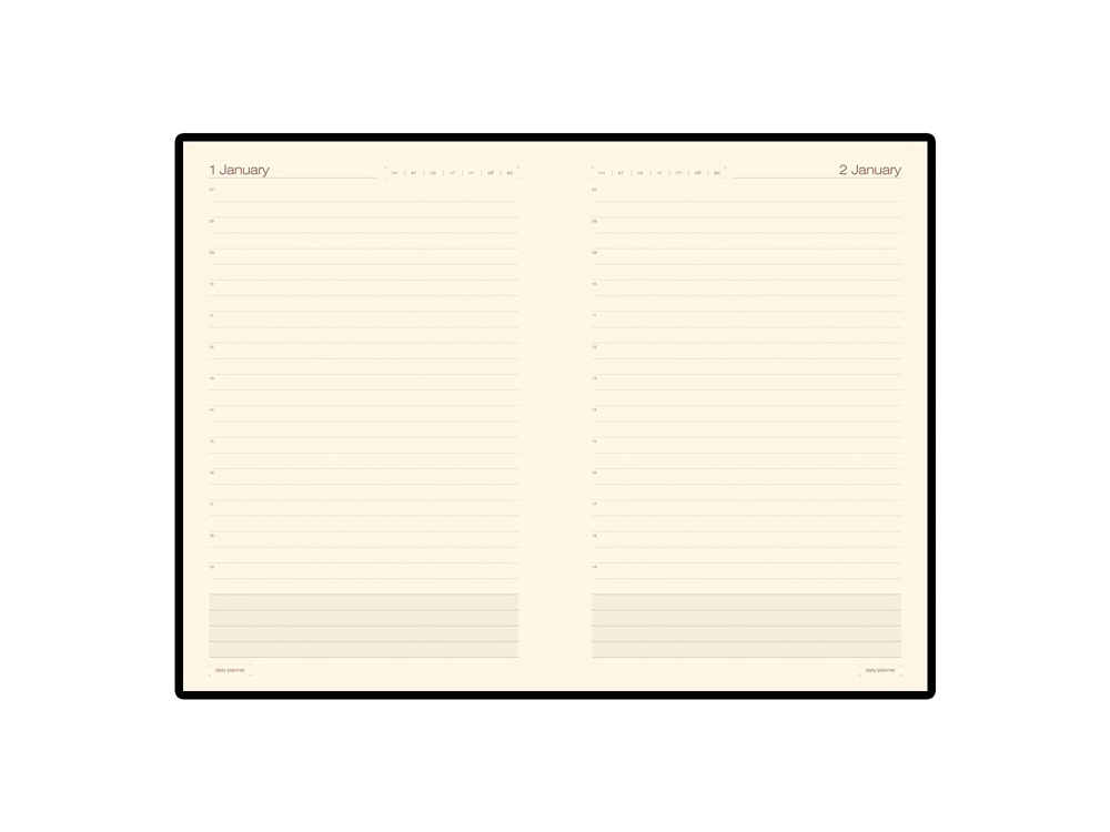 Ежедневник А5 Porto от бренда Bruno Visconti - это качественный и недорогой корпоративный подарок, произведенный специально под персонализацию. Периметр обложки с закругленными уголками украшен декоративной строчкой в тон основного цвета обложки. Полудатированные страницы имеют разбивку по времени, за счет чего можно точно спланировать все текущие дела. В ежедневнике Porto есть полезная справочная информация на русском языке, а также 384 страницы для записи идей, мыслей и составления рабочих планов. Месяц года указан на английском языке, день недели- на русском. Для изготовления страниц используется качественный бежевый офсет повышенной плотности (70 г/кв м). Сменный блок можно вынимать из обложки, вставлять новый. Гордость Португалии, благородный портвейн, был создан в первую очередь для удовольствия давнего заклятого друга и противника – Великобритании. Седые английские лорды и молодые денди Лондона отдали должное - и попали в зависимость. Ежедневники Porto имеют одну общую черту с напитком, давшим им имя: седые лорды и молодые денди оценят благородство и изящество этого продукта.