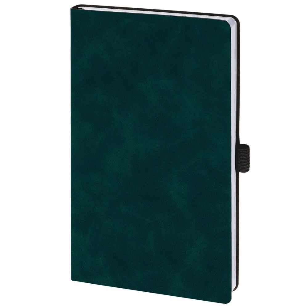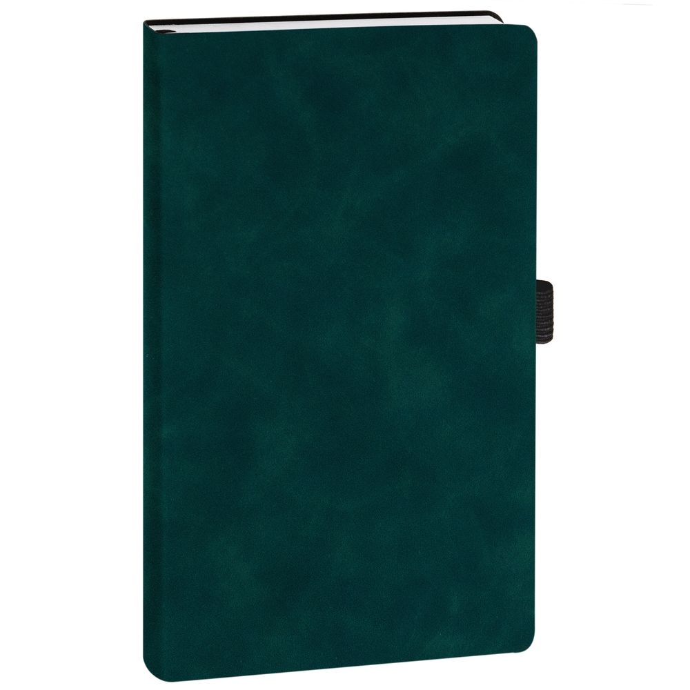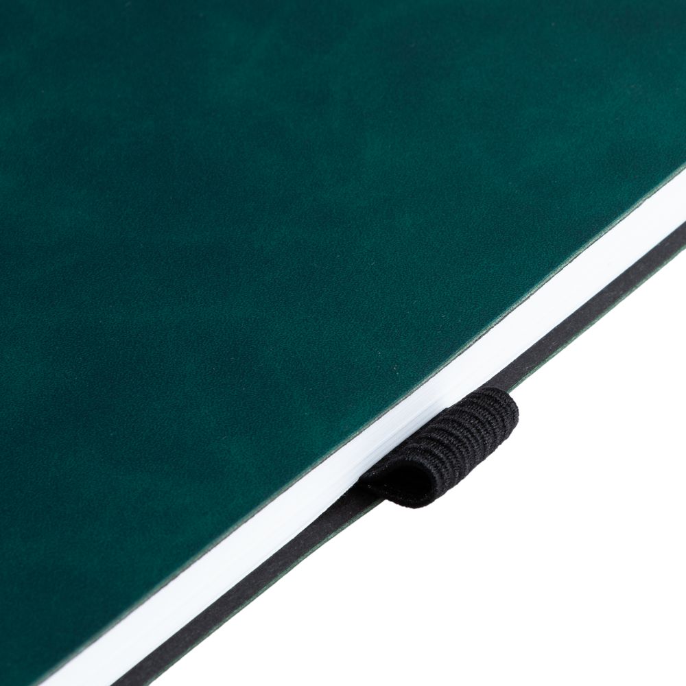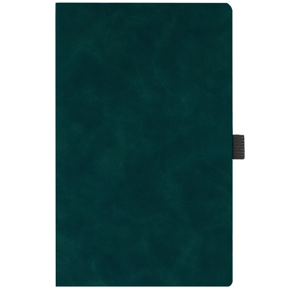 Ежедневник с гибкой обложкой, выполнен из материала Nubuck Touch, зеленый FF, дополнен ляссе и петлей-резинкой для ручки черного цвета.