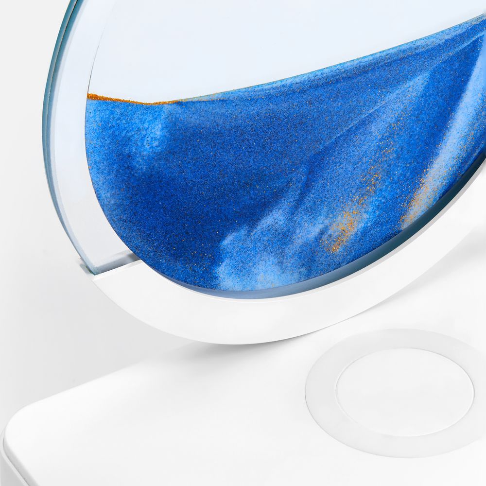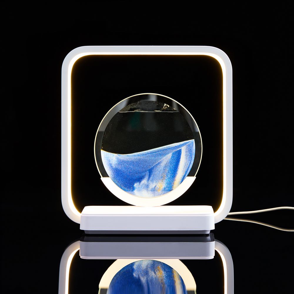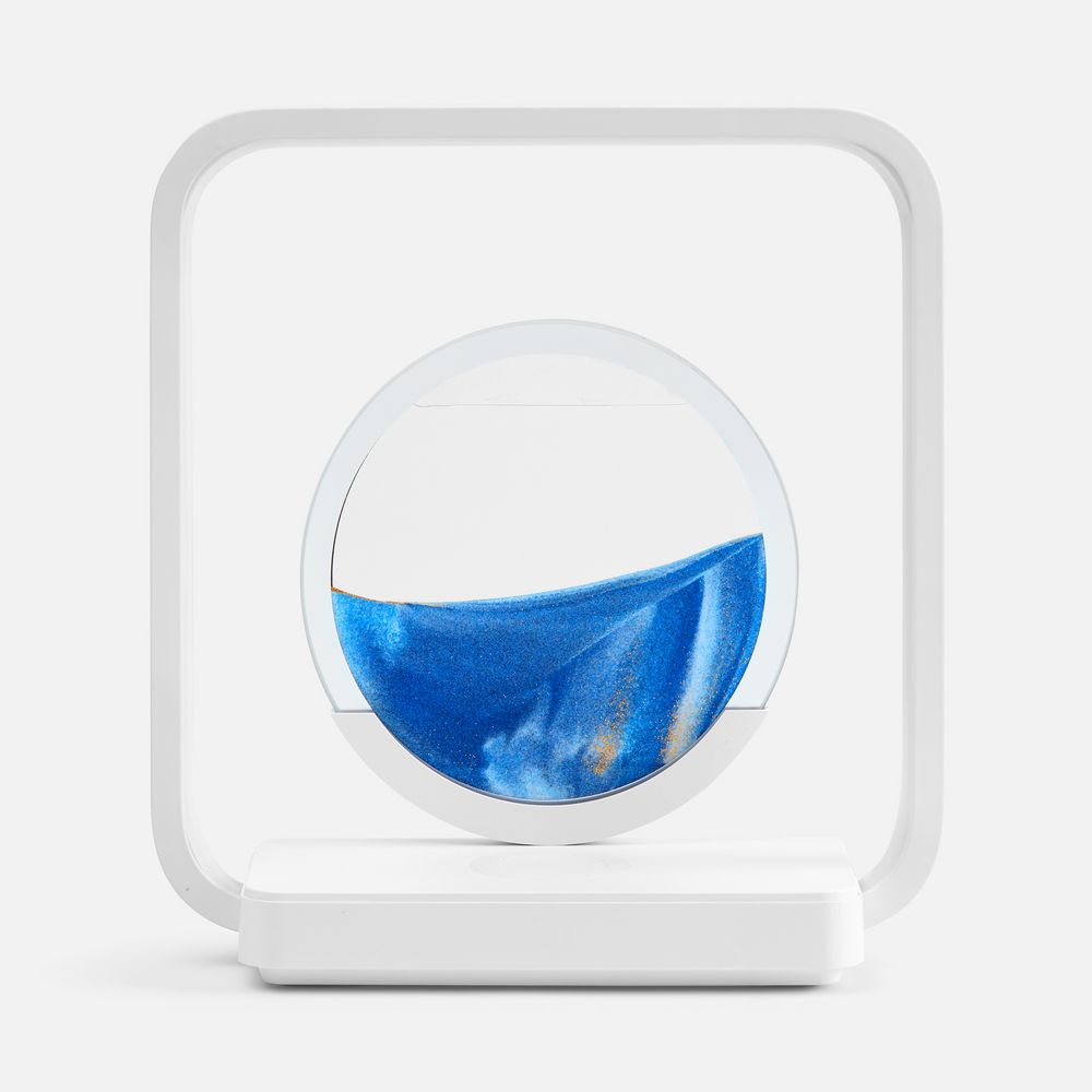 Круглую стеклянную вставку с песком можно перевернуть и наблюдать за плавным перемещением песчинок в воде. Это станет и отдыхом для глаз, и антистрессом, который успокоит во время напряженного рабочего дня. Регулируемая подсветка внутри рамки еще больше акцентирует внимание на картине и еще превращает Sandflow в стильный точечный источник света.