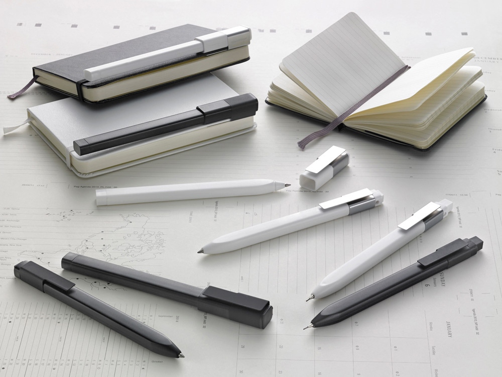 Идеально сочетается с блокнотом Moleskine, специально предназначена для крепления на стороне классической черной обложки. Характеристики: черные чернила; шариковый стержень; сменный стержень; выдвижной наконечник; матовое черное покрытие АБС; черный прорезиненный стальной зажим (зарегистрированный дизайн) с выгравированным логотипом;16 наклеек для оформления ручки.