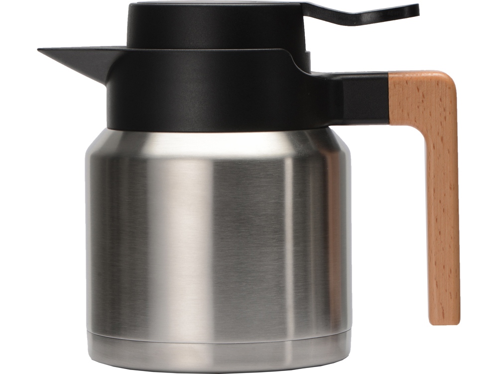 Вакуумный термокувшин с деревянной ручкой позволяет не только удобно заваривать кофе или чай, но и сохранять напиток горячим в течение долгого периода времени. Он выполнен из пищевой долговечной стали 304 марки, которая не подвержена коррозии и отличается повышенной прочностью. Двойные стенки с вакуумной изоляцией между ними защищают напиток от остывания, сохраняя температуру до 12 часов. Ручка из дерева имеет эргономичный дизайн, который позволяет не обжигаться при использовании. Устройство термокувшина весьма интересно: для того, чтобы налить в чашку кофе или чай, вам нужно нажать на клапан крышки, а когда напиток закончится – вы просто открутите ее, чтобы наполнить емкость новой порцией, и закрутите обратно. Благодаря такому устройству термокувшин более герметичен, чем стандартные чайники, и удерживает температуру настолько долго. * в данной моделе силиконовая вставка на дне термокувшина не предусмотрена.