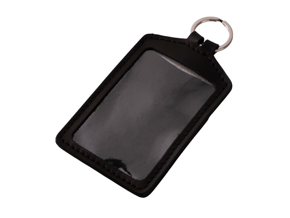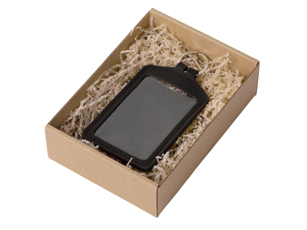 Кожаный бейдж для пропуска, черный купить оптом и в розницу с нанесением логотипа в Самаре