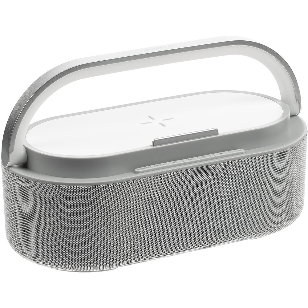 Два динамика мощностью 5 Вт позволяют наполнить звуком помещение площадью до 30 м². Емкая встроенная батарея позволяет использовать колонку и лампу без привязки к розетке.