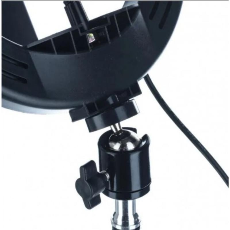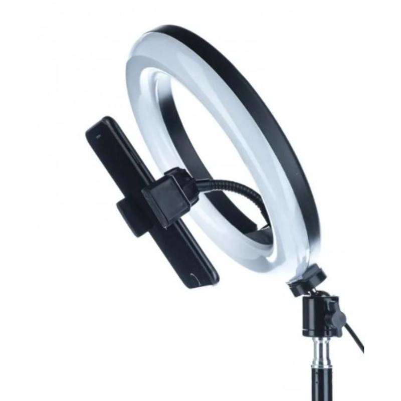 В комплекте кольцевая лампа, настольный штатив, держатель для телефона, шаровое металлическое крепление