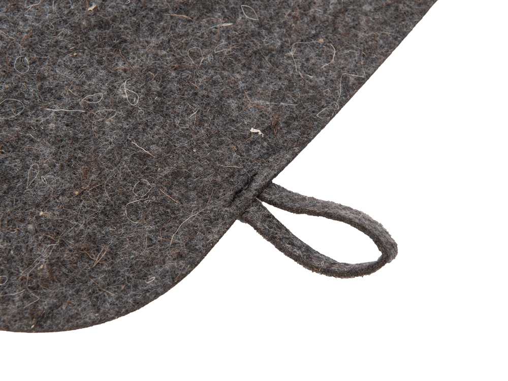 Коврик для бани и сауны защитит от ожогов и добавит дополнительный комфорт. Его можно класть на пол, а можно на нем сидеть или лежать. Войлок обладает высокими термоизоляционными свойствами и хорошо впитывает влагу, поэтому наилучшим образом подходит для изготовления банных аксессуаров. • Защищает от ожогов • Забота о гигиене • Хорошо впитывает влагу • Быстро сохнет Рекомендуется ручная стирка при 30°C с использованием специальных средств для шерсти или мягкого мыла.