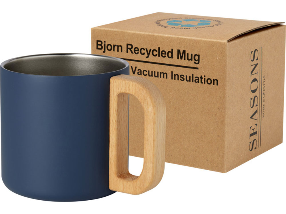Кружка Bjorn изготовлена из переработанной нержавеющей стали, сертифицированной по стандарту RCS, а ручка изготовлена из древесины бука, полученной из ответственных источников. Медная вакуумная изоляция в кружке помогает поддерживать идеальную температуру напитков в течение длительного периода времени. Эта кружка является отличной альтернативой обычным кружкам и предназначена для предотвращения передачи тепла наружу. Протестировано и одобрено согласно немецкому законодательству о безопасности пищевых продуктов (LFGB) и проверено на содержание фталатов согласно нормам REACH. Емкость: 360 мл. Не содержит БФА.