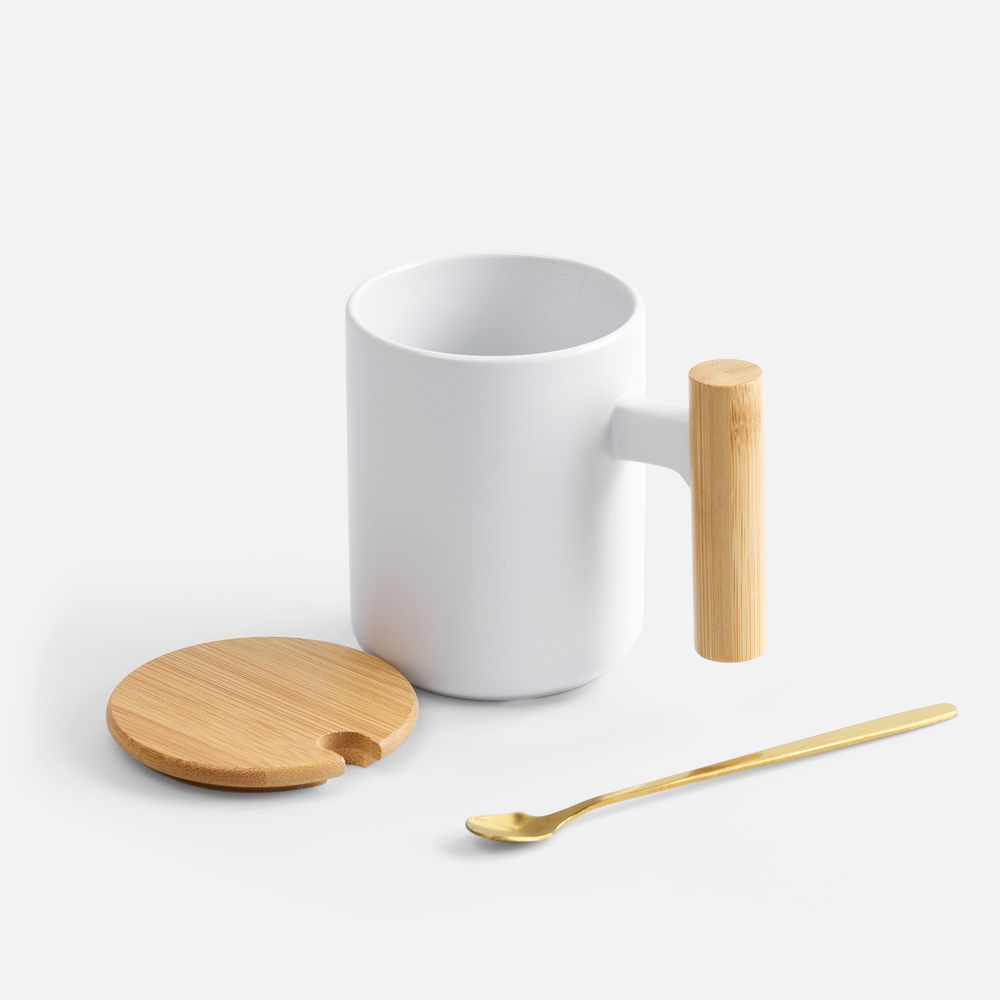 Кружка с ложкой Eco Fusion, белая купить оптом и в розницу с нанесением логотипа в Самаре