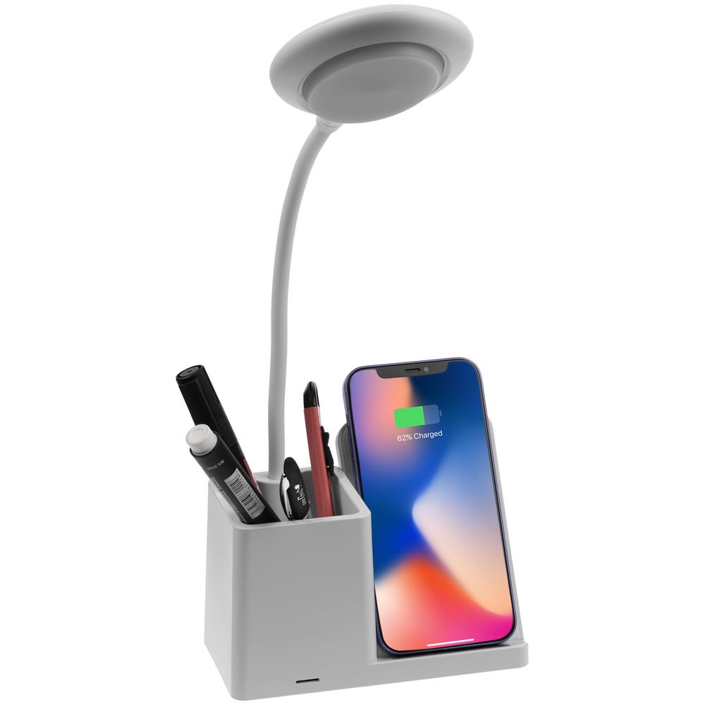 Лампа с органайзером и беспроводной зарядкой writeLight, ver. 2, белая купить оптом и в розницу с нанесением логотипа в Самаре