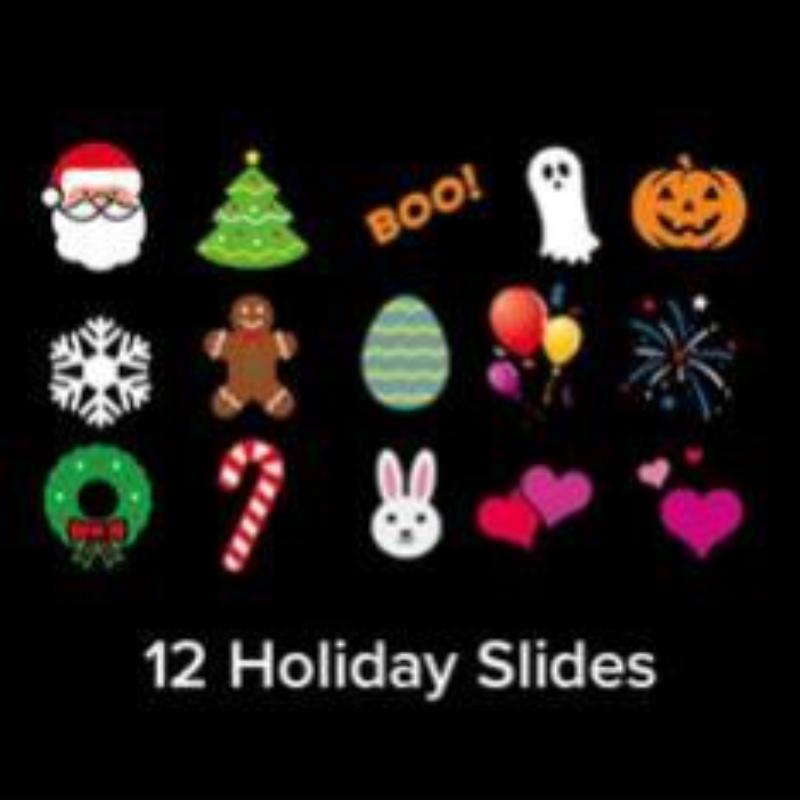 • 12 праздничных проекций (6 новогодних, 2 хэллоуина, 1 день святого Валентина, 1 пасхальный, 1 день рождения (воздушные шары),1 фейерверк)