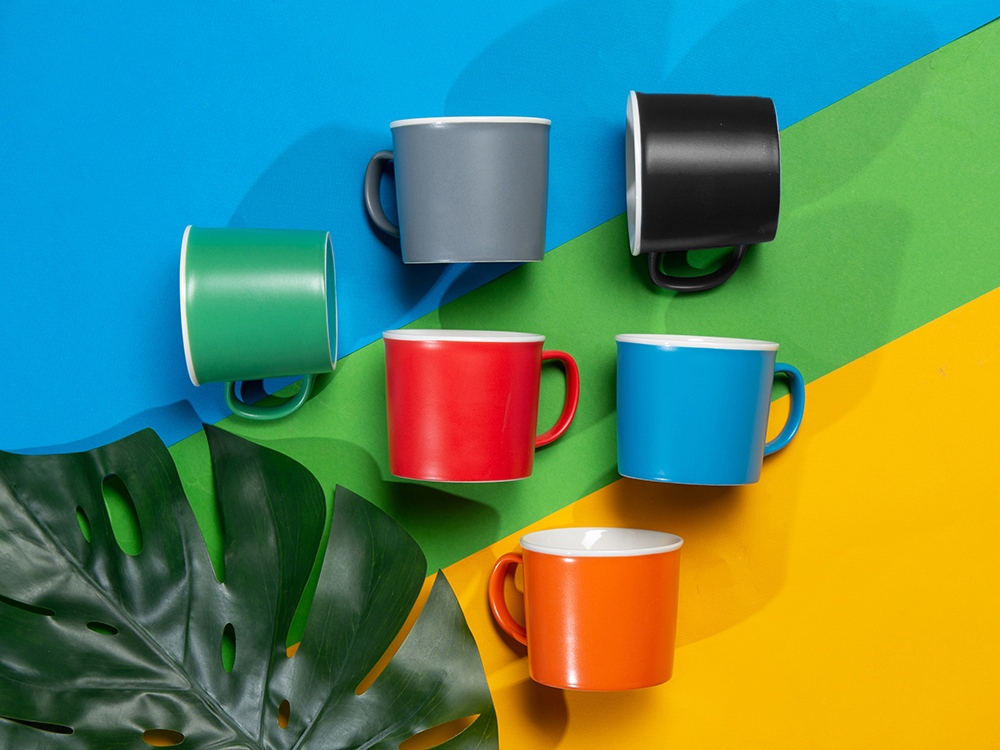 Матовая кружка Nancy 360 мл цветная снаружи, белая внутри, желтый купить оптом и в розницу с нанесением логотипа в Самаре
