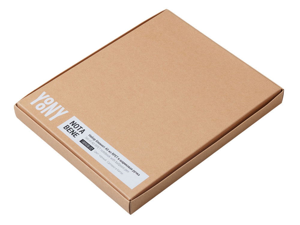 Блокнот в твердой обложке из rpet-пластика с металлической шариковой ручкой. В обложке магнитный держатель для ручки. Также верхняя часть обложки трансформируется в подставку для телефона. В блокноте 80 листов бумаги 70 г/м2.