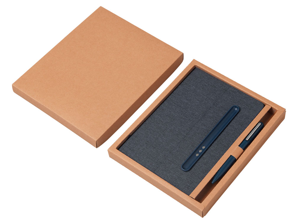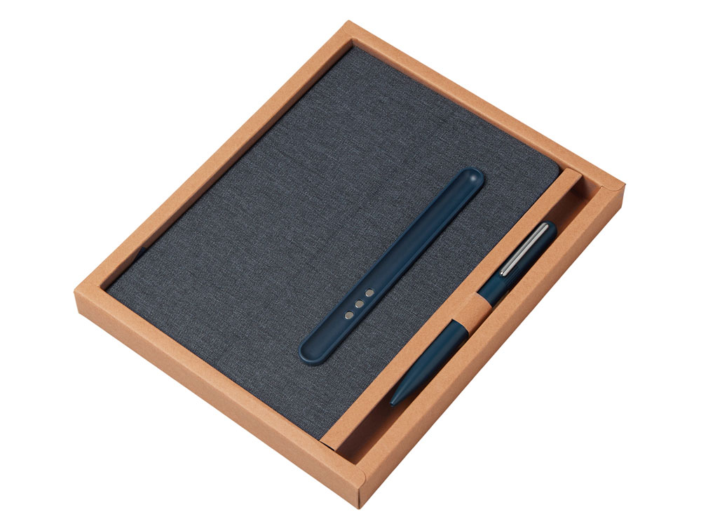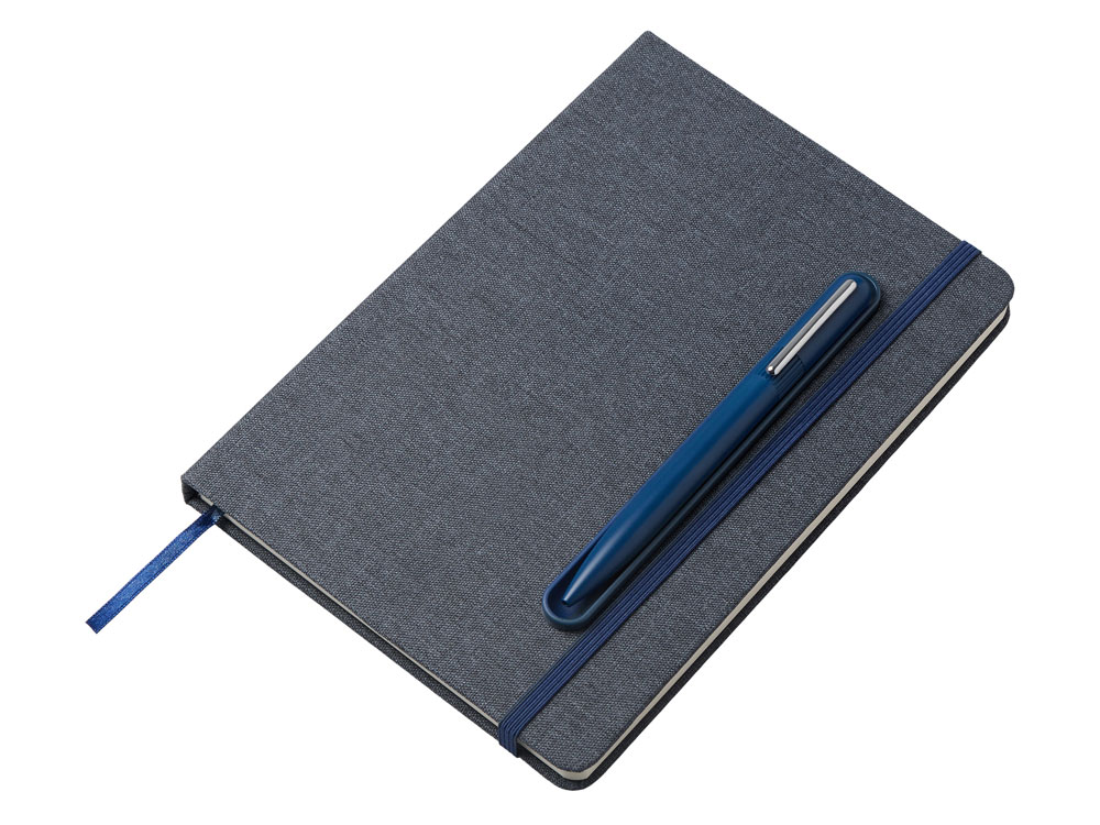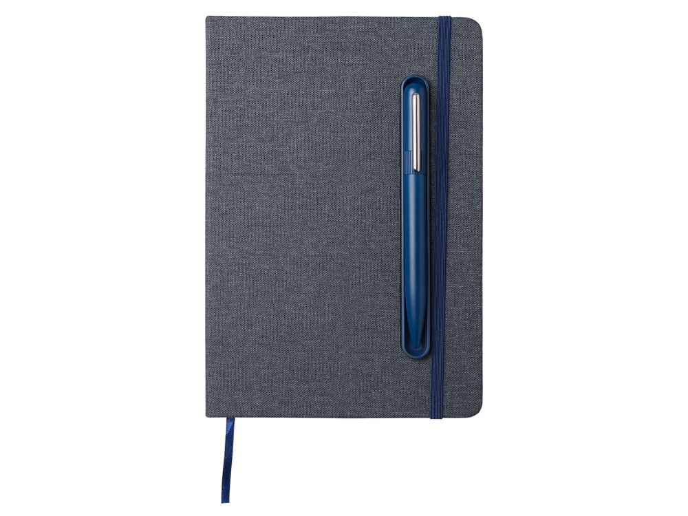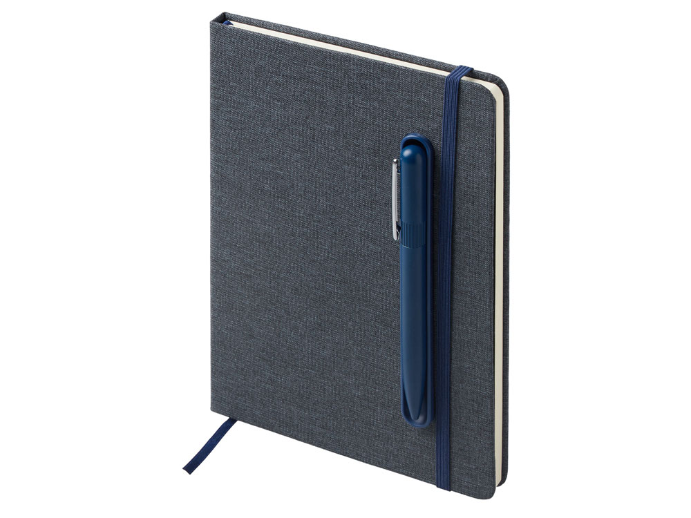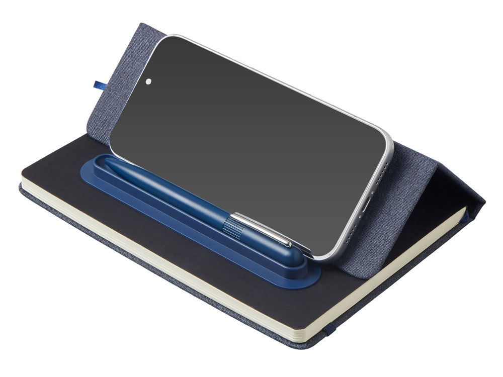 Набор блокнот А5 с магнитным держателем для ручки и подставкой для телефона и металлической шариковой ручкой NotaBene, темно-синий