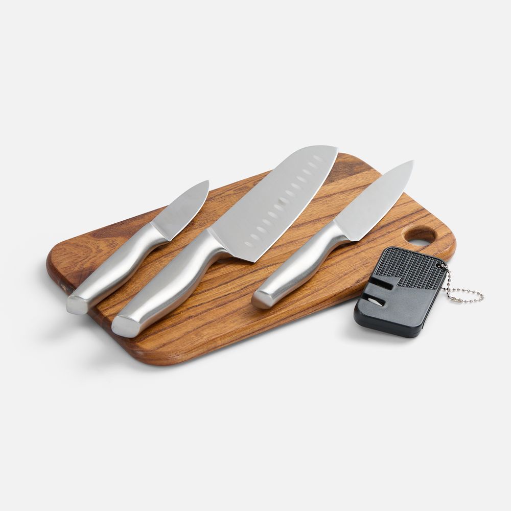 | Материал | лезвия ножей - нержавеющая сталь, сатинированная, 3Cr13; ножны - полипропилен; точилка для ножей - сталь, вольфрамовая, АБС, керамика; доска - дерево, вишня; сумка - ПВХ |