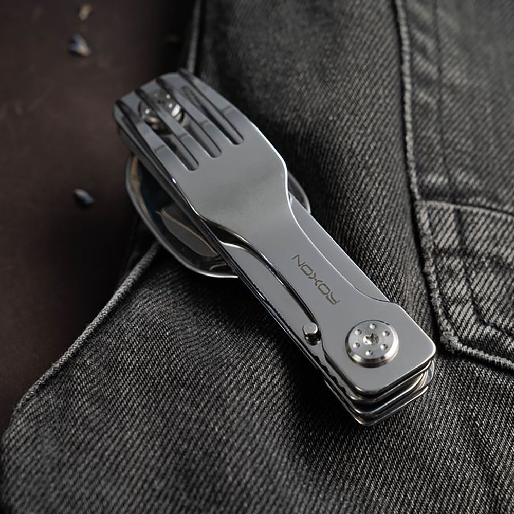 Набор столовых приборов C1 сделает туристические походы, пикники и другие занятия на свежем воздухе комфортнее. Ложка, вилка и нож легко складываются в компактную конструкцию для перевозки и раскладываются на три отдельных прибора — для использования по назначению.