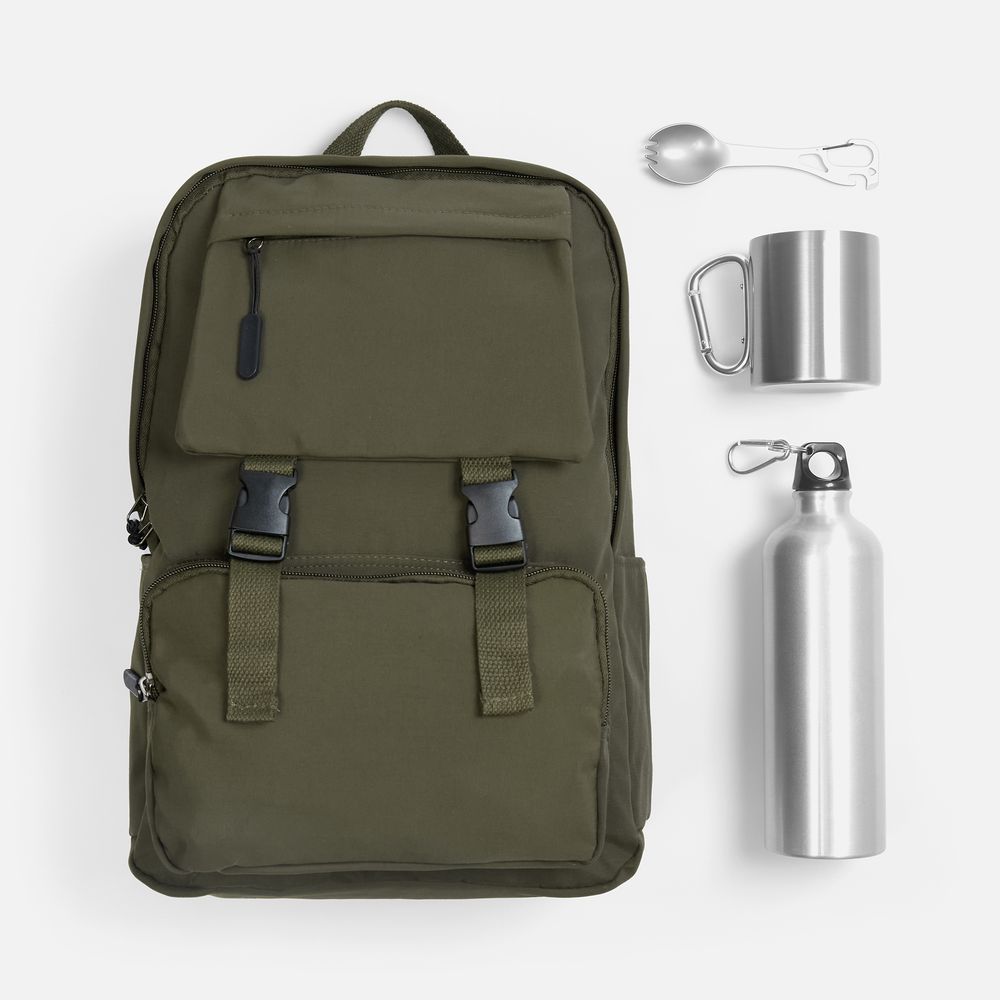 | Материал | рюкзак - нейлон; кружка - пищевая сталь, 304, внутри - нержавеющая сталь, 201; бутылка - алюминий; столовый прибор - нержавеющая сталь, 420 |