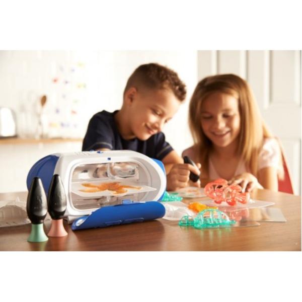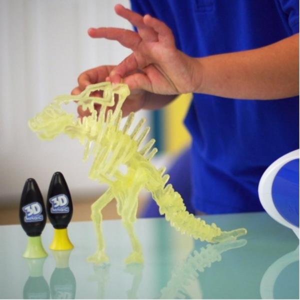 В набор входит 3D маркер, 3 тюбика с гелем разных цветов (красный, оранжевый, зеленый), 3 формочки для моделирования, 3 трафарета, 2 дополнительных трафарета для свободного моделирования, инструкция.