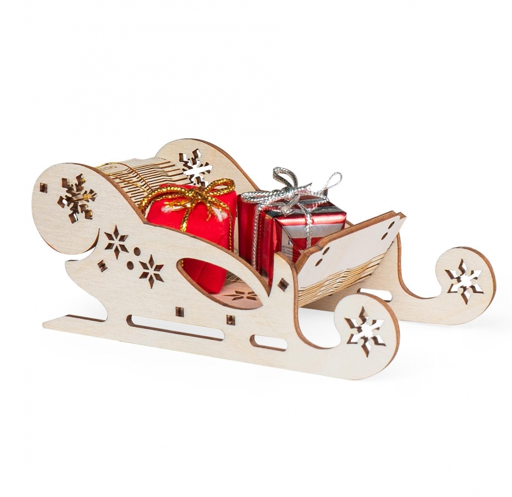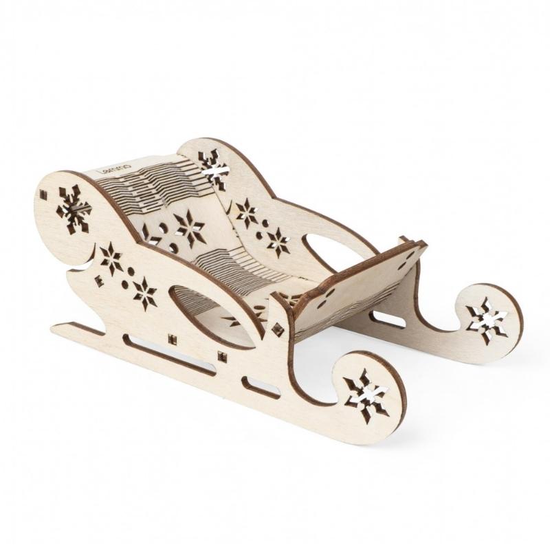 • Деревянный конструктор и набор для творчества из дерева новогодние «Рождественские Сани» для детей и взрослых