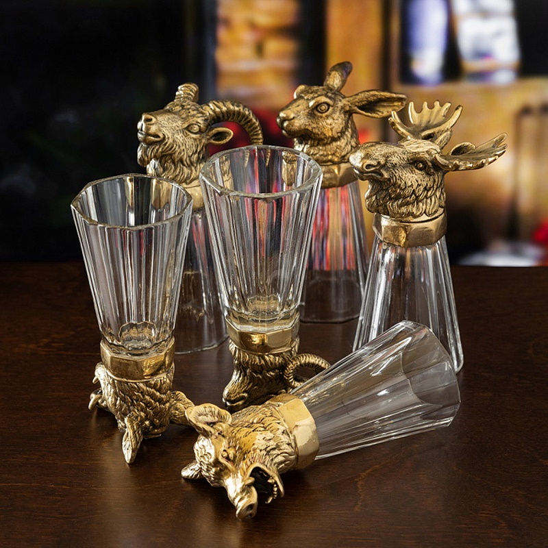 • Лафитники изготовлены из стекла и патинированной латуни ручной работы