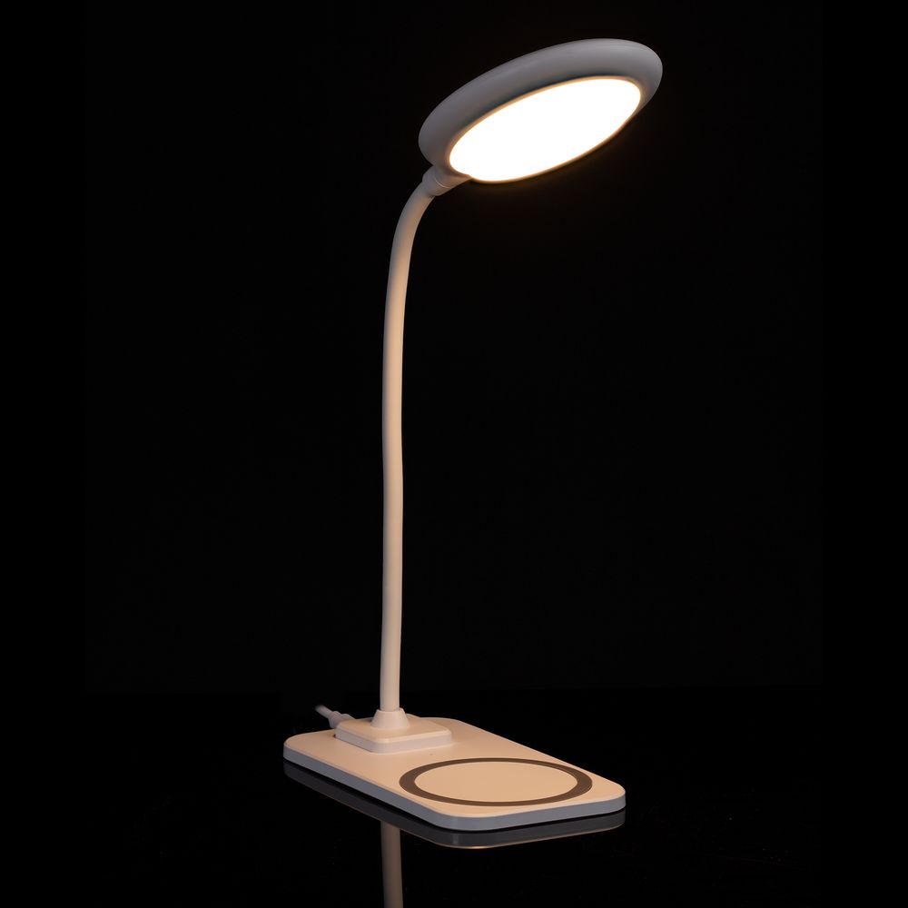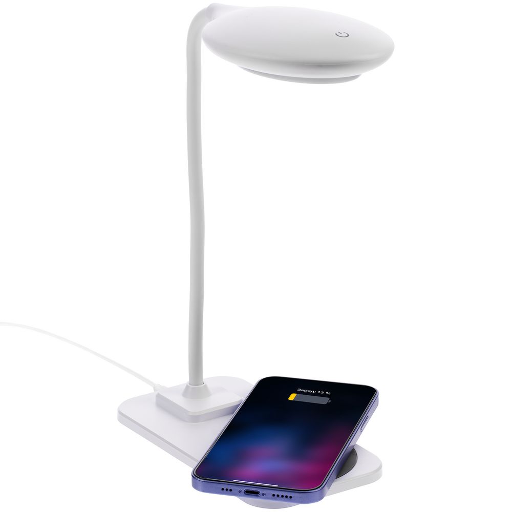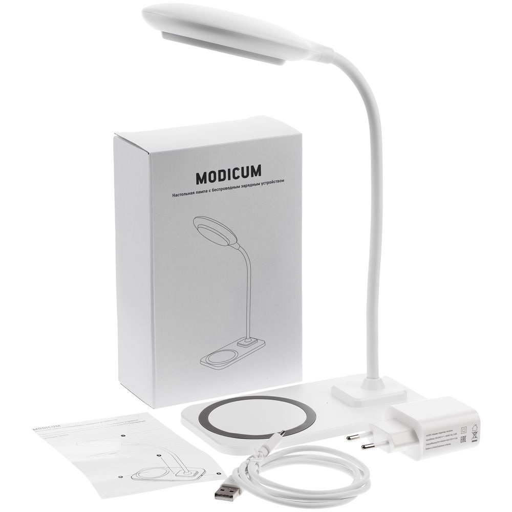 Настольная лампа с беспроводной зарядкой Modicum, белая купить оптом и в розницу с нанесением логотипа в Самаре