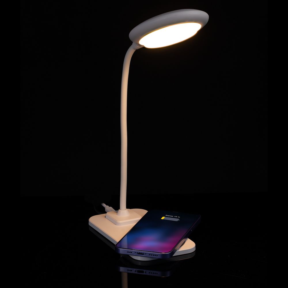 Настольная лампа с беспроводной зарядкой Modicum, белая