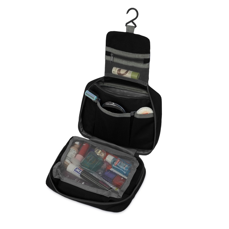 • Вместительное пространство с двумя большими отделениями и несколькими карманами дает возможность эргономично распределить весь дорожный арсенал косметических и туалетных принадлежностей