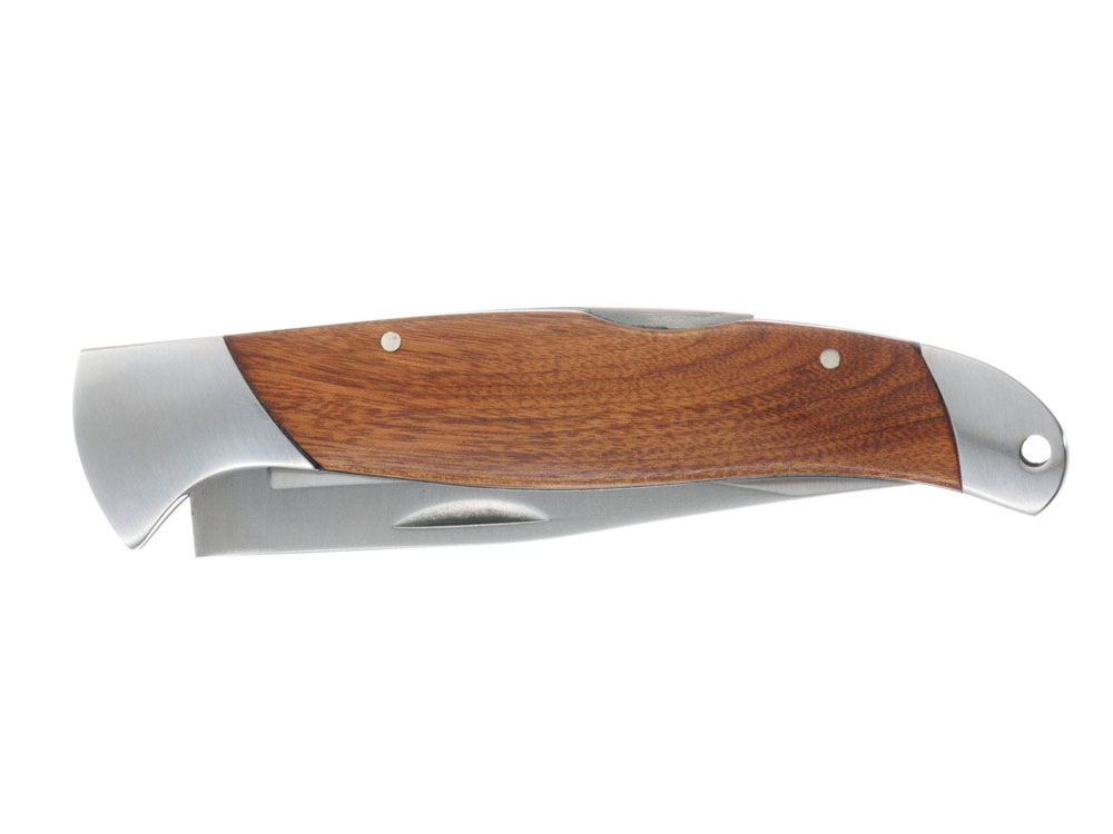 Нож складной Stinger, 100 мм (серебристый), материал рукояти: нержавеющая сталь, розовое дерево купить оптом и в розницу с нанесением логотипа в Самаре