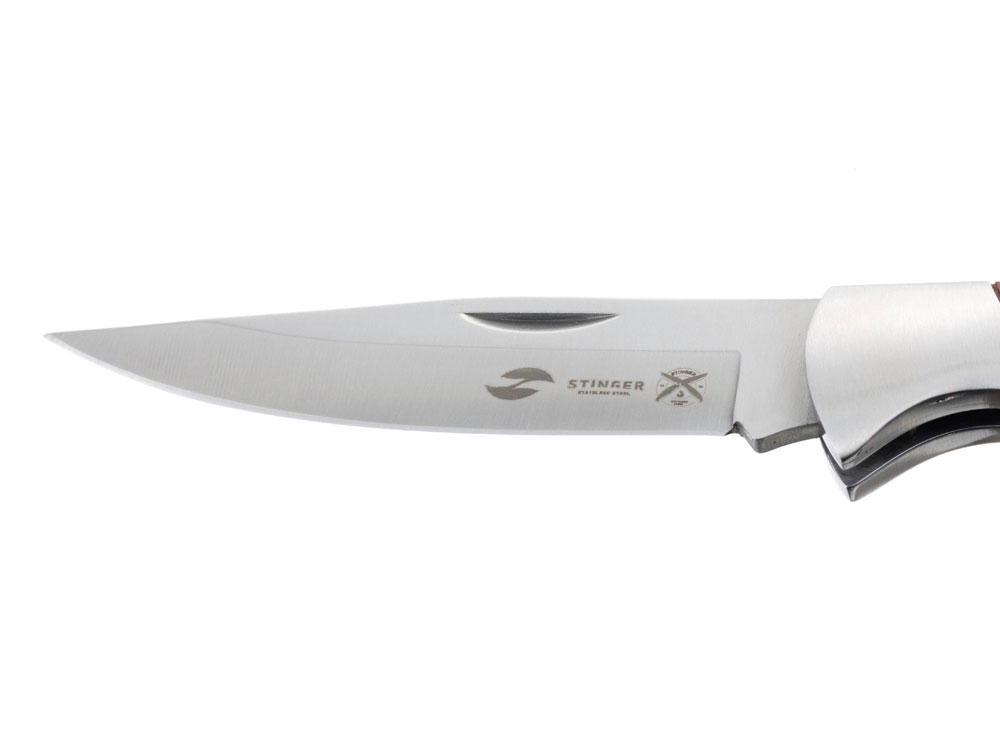 Нож складной Stinger, 100 мм (серебристый), материал рукояти: нержавеющая сталь, розовое дерево
