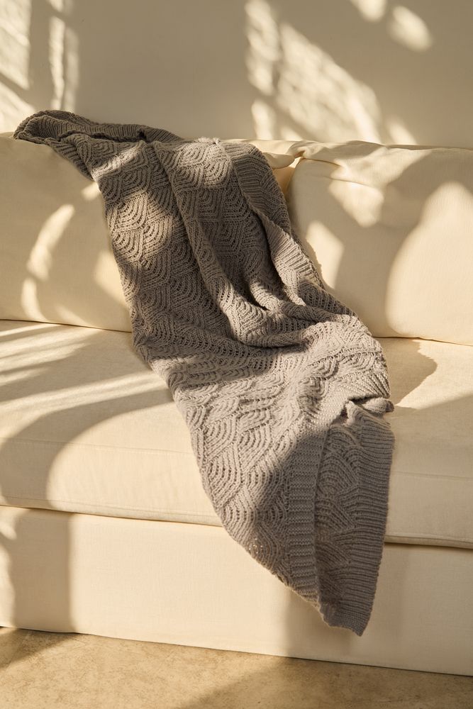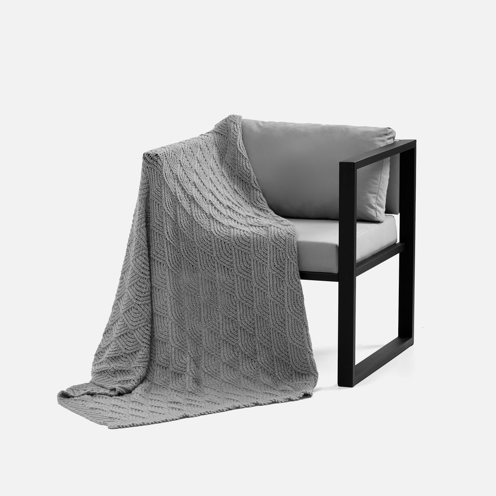 Изысканный воздушный плед с утонченным узором из закругленных ромбов станет настоящим украшением пространства. Словно полупрозрачный узор создает напоминает морские ракушки, навевая мысли о приятном курортном отдыхе и полной безмятежности.