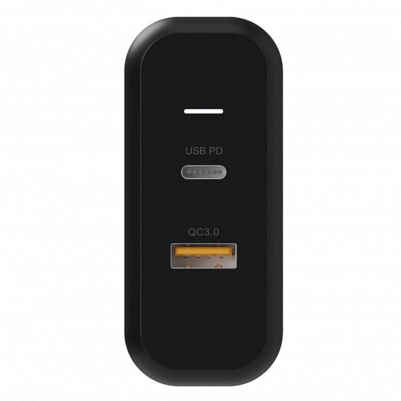 Сетевое зарядное устройство с двумя портами и поддержкой быстрой зарядки. Корпус из теплостойкого и прочного пластика. На устройстве есть LED индикатор.