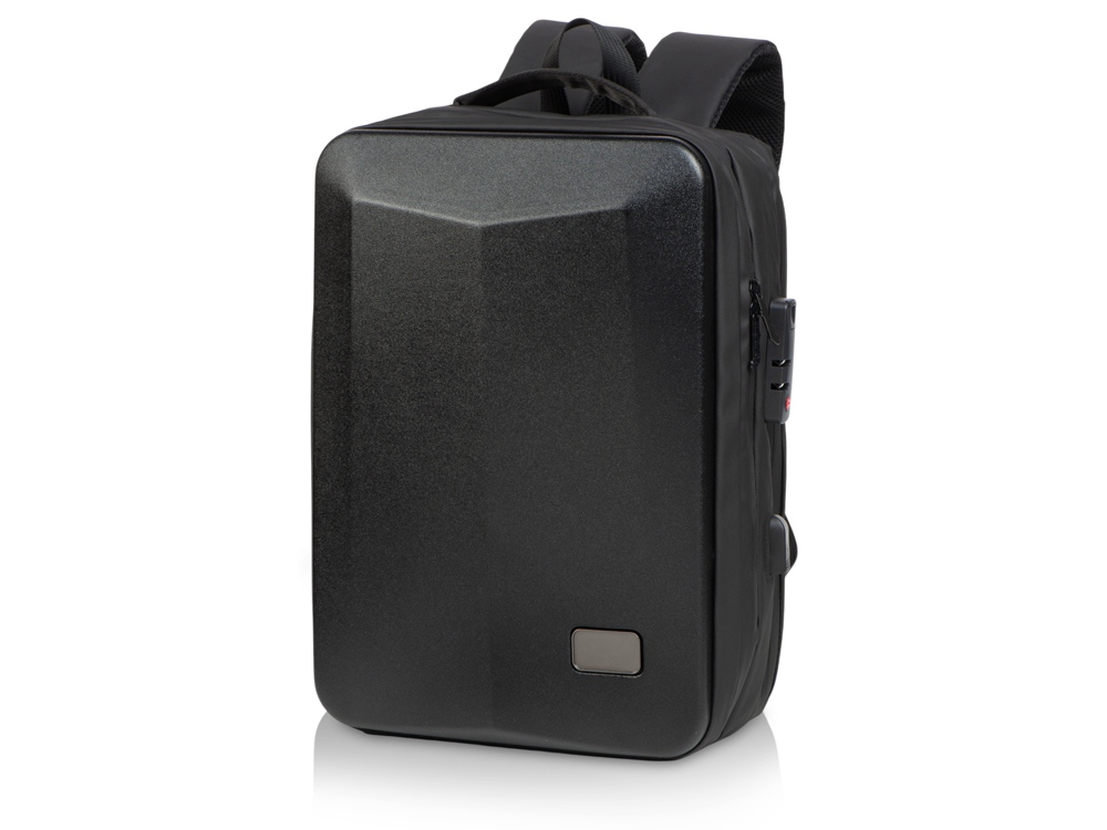 Водостойкий бизнес-рюкзак с пластиковой панелью спереди выглядит стильно и обеспечивает бережное хранение ваших личных вещей. Подходит для передвижений по городу и деловых поездок. 2 вместительных отделения позволяют разместить все необходимое: большое отделение для одежды с фиксирующими ремнями и органайзером, меньшее отделение с карманами для ноутбука и планшета и сетчатым органайзером. Несанкционированный доступ к содержимому вашего рюкзака будет затруднён благодаря кодовому замку и прочной пластиковой панели спереди. В рюкзаке предусмотрено много дополнительных удобств для использования: - интегрированный карман на молнии для бутылки сбоку - расстегнули, не снимая рюкзак, и бутылка окажется внутри корпуса - USB выход - светоотражающий элемент на лямке для большей безопасности - карман на лямке для карт, проездного или ключей - регулирующиеся по длине лямки - сетчатая спинка - ремень для крепления на ручку чемодана - нетканый мешок для хранения в комплекте - шильд для нанесения вашего логотипа в комплекте