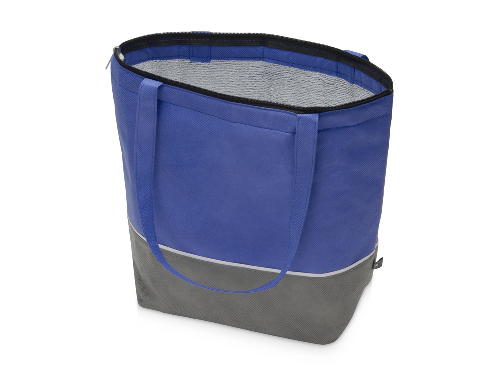Сумка-холодильник Reviver с длинными ручками из нетканого переработанного материала RPET, синий/серый купить оптом и в розницу с нанесением логотипа в Самаре