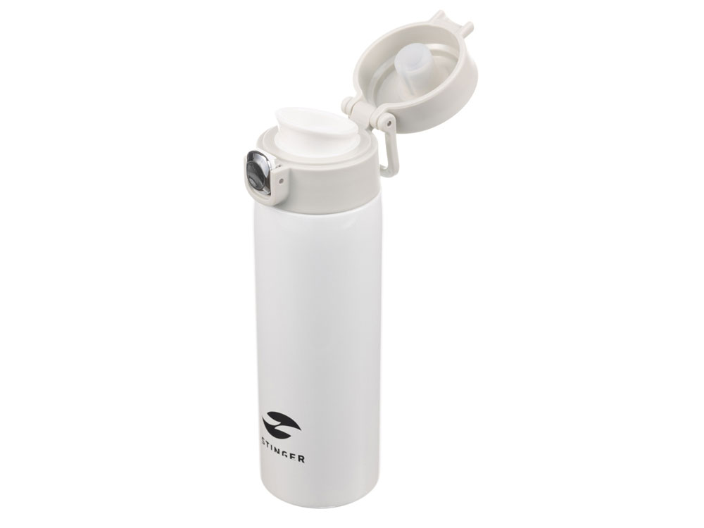 СВЕРХЛЕГКАЯ ТЕРМОКРУЖКА STINGER 0,42 л НАЗНАЧЕНИЕ Термокружка STINGER предназначена для употребления пищевых жидкостей (воды, напитков) как в горячем, так и в холодном состоянии. ХАРАКТЕРИСТИКИ Объём: 0,42 л Вес: 0,231 кг Время сохранения тепла: 6 часов Время сохранения холода: 6 часов Метод изоляции: вакуум Размеры • Высота – 21,9 см • Диаметр горлышка – 4,7 см • Диаметр дна – 6,5 см • Ширина (с учетом кольца и фиксатора) – 7,5 см Тип крышки: винтовая крышка-пробка с откидным механизмом Цвет: белый Материалы • Корпус: медицинская нержавеющая сталь, класс AISI 316 Stainless Steel • Колба: медицинская нержавеющая сталь, класс AISI 316 Stainless Steel • Крышка: пищевой пластик, не содержит бисфенол А (BPA free) • Прокладки-уплотнители: пищевой силикон ОСОБЕННОСТИ • Двойные стенки с вакуумной изоляцией отлично сохраняют температуру долгое время, гарантируют безопасность прикосновения к очень горячим и холодным напиткам. • Внешний и внутренний корпус из прочной медицинской нержавеющей стали AISI 316. • Пластиковые детали не содержат Бисфенол А (BPA FREE). • Герметичная крышка и дополнительный фиксатор защищают от случайного открывания и проливания жидкости. • Конструкция крышки позволяет открывать термокружку в одно касание и одной рукой – достаточно нажать на кнопку, верхняя крышка откинется на 180 градусов и автоматически зафиксируется в открытом положении. • Силиконовая накладка на дне предотвращает случайное скольжение и опрокидывание. • Ситечко для заварки чая или кофе. • Кольцо для удобства переноски. • Подходит под все виды подстаканников.