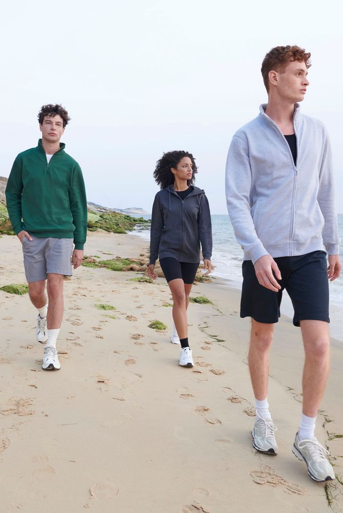 Толстовка унисекс на молнии без капюшона выполнена из хлопка с добавлением переработанного полиэстера.