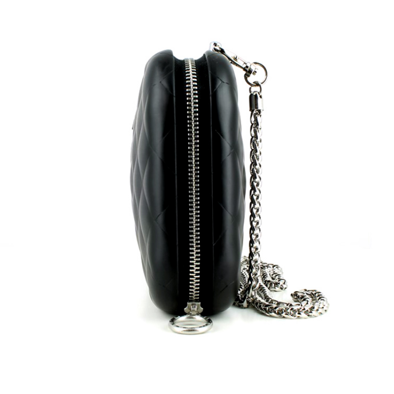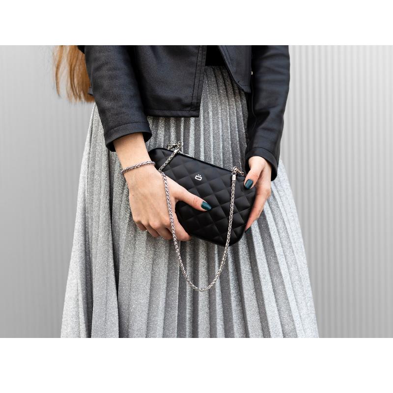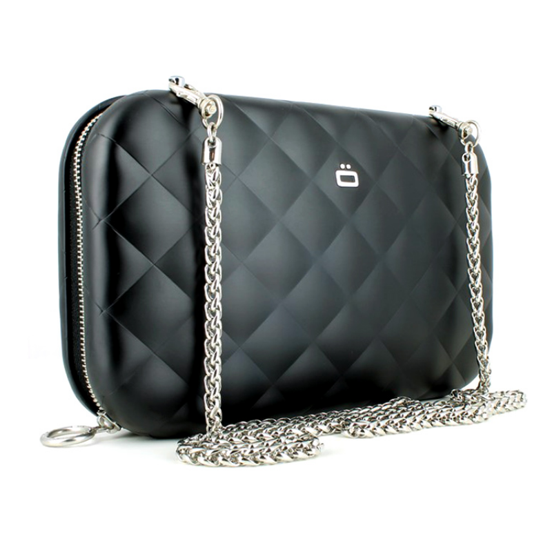 • Стеганый корпус изготовлен из авиационного алюминия и поликарбонатного полимера. Сочетание этих материалов делает изделие очень прочным, при этом весит клатч не больше привычных кожаных аналогов