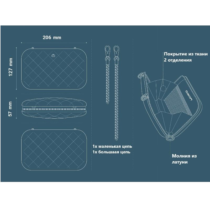 • 2 цепочки, 4 способа его носить. Женский клатч можно носить в руке, как кошелек, или прикрепить к нему цепочку, в комплекте их две разной длины, что позволяет носить сумочку на плече, предплечье или запястье